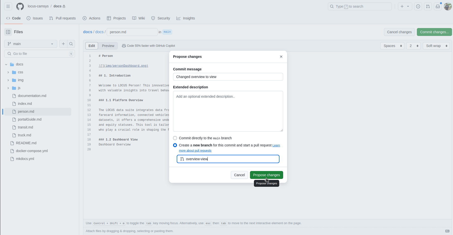 4. Deploy Changes: After merging, changes will be automatically deployed. You can review the updates on the documentation site at Locus Portal Docs.