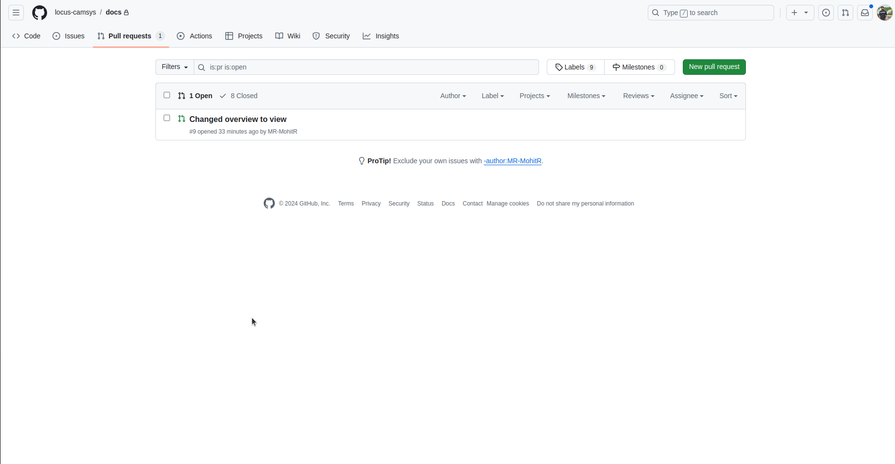 2. Navigate to Pull Requests: Click on the Pull requests tab to view all active and past PRs.