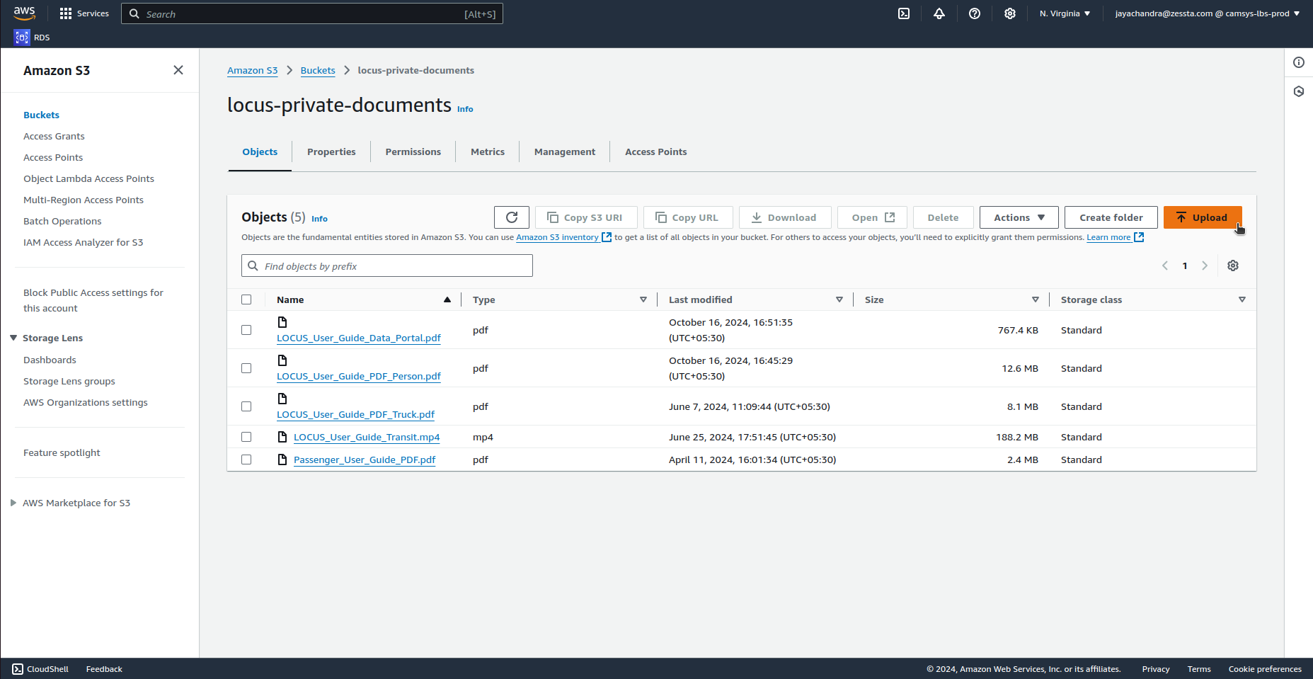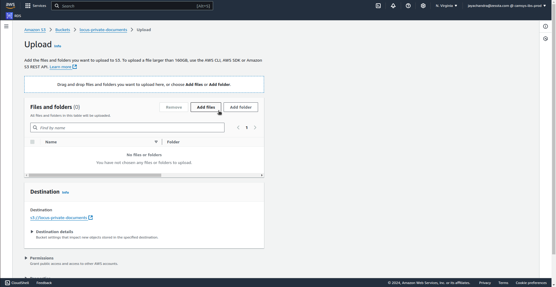 - Navigate to Your S3 Bucket: Open the Amazon S3 service from the AWS Management Console and select the target bucket (e.g., locus-private-documents).