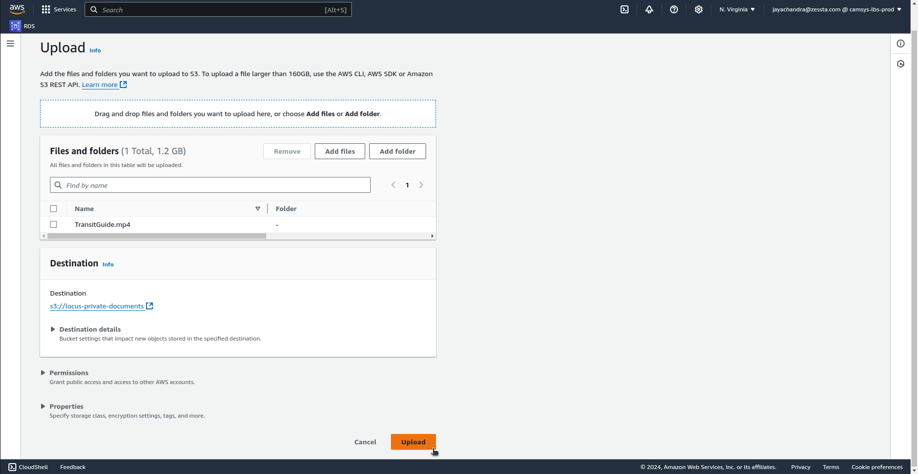 To upload a video to an Amazon S3 bucket, follow these steps. This guide assumes you have permissions to access and upload files to the S3 bucket.