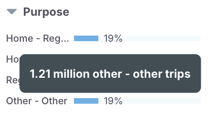 This chart reports travel for residents and non-residents, based on whether they reside within the study area or outside of it. Users can conduct analysis for all travelers, or separately for residents and non-residents.