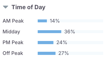 The Time-of-Day chart allows users to view the set of trips across various time periods during the day or at night.