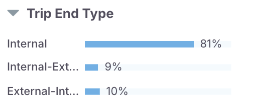Internal and external trips are classified by trip end type. Any trip end that is outside the trip area is tagged as external.
