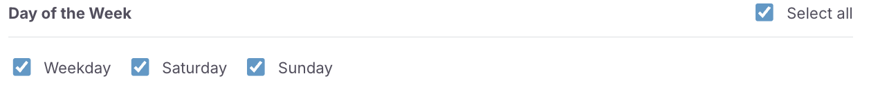 Explore how travel behavior varies on different days of the week, providing insights into weekly trends. Weekday trips present an average of all weekdays throughout the year, Saturday trips present an average of all Saturdays, and Sunday trips present an average of all Sundays throughout the year.