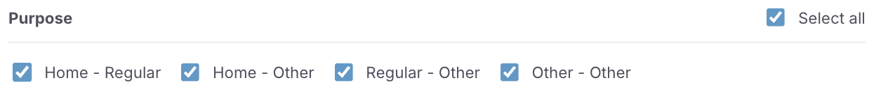 Analyze data based on the purpose of the trip, such as commuting, leisure, or other specific purposes.