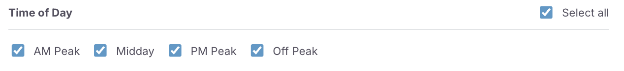 Examine data based on discrete time of day intervals. The available options are a default definition of time-of-day classification and a user-defined custom time of day classification.
