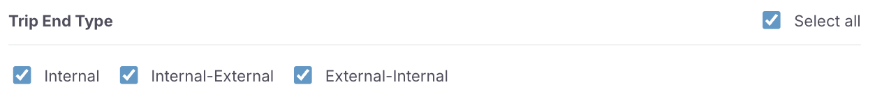 Understand travel patterns by filtering data based on whether trips end within the study area (internal trips) or extend beyond the study area (external trips).