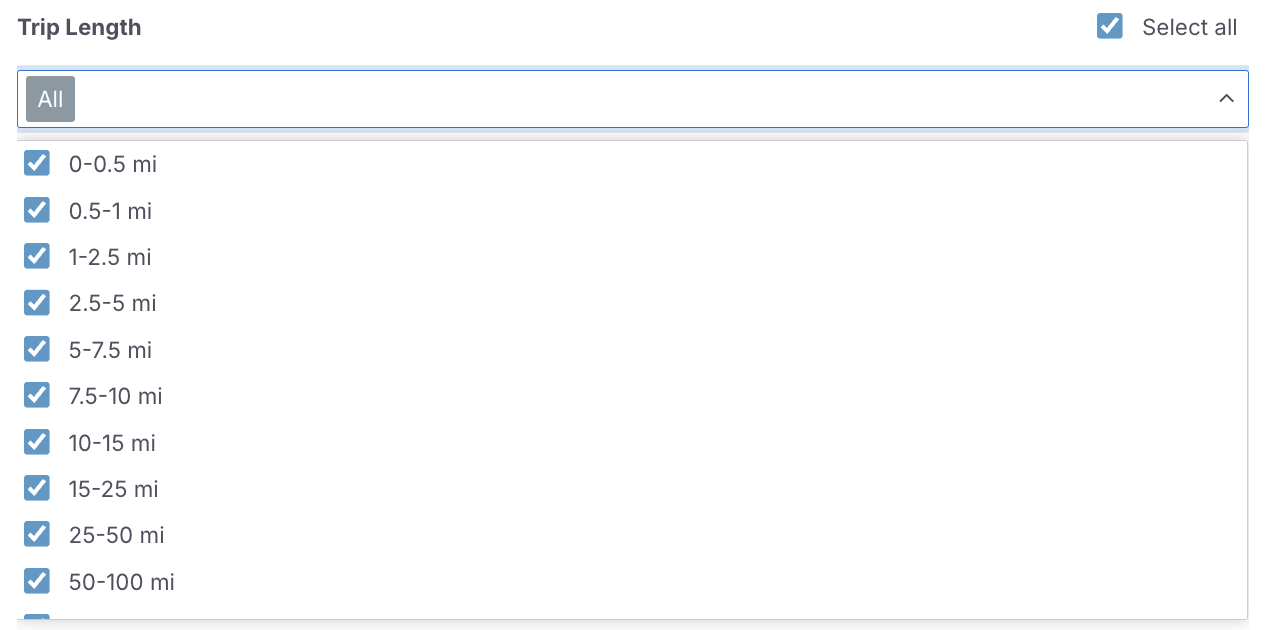 Filter data based on the length of trips, enabling you to analyze patterns for short or long-distance travel.