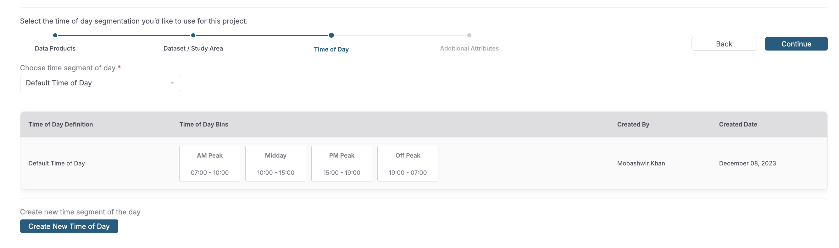 Step 3: Specify the time of day parameters you want to apply for this project. The smallest time of day bin that can be specified is 30 minutes. These intervals will add up to create a 24 hour period.