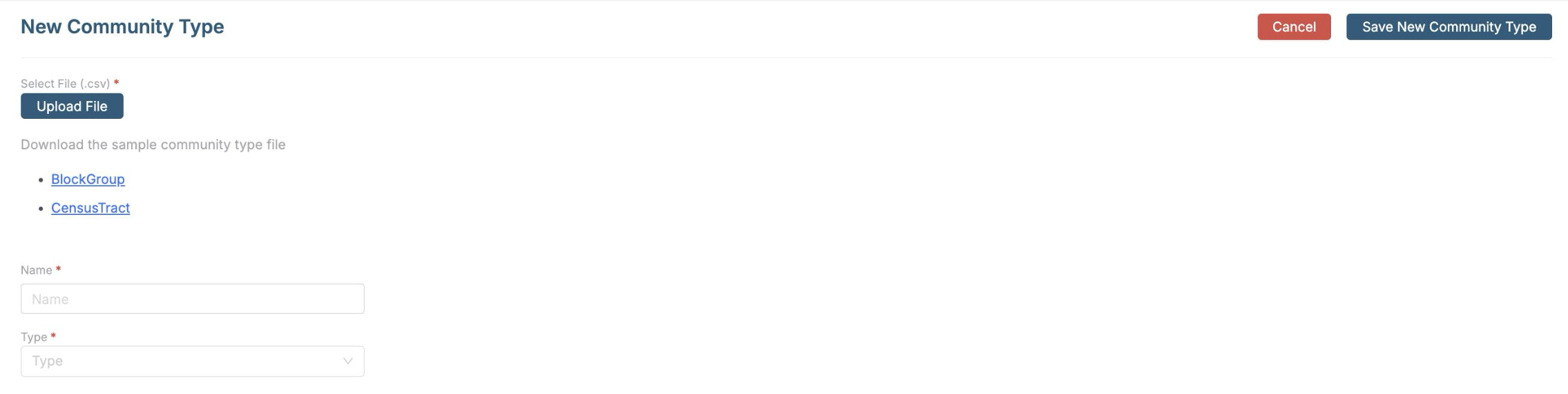 ii. Use the "Create New Community Type" button to create a new community type.