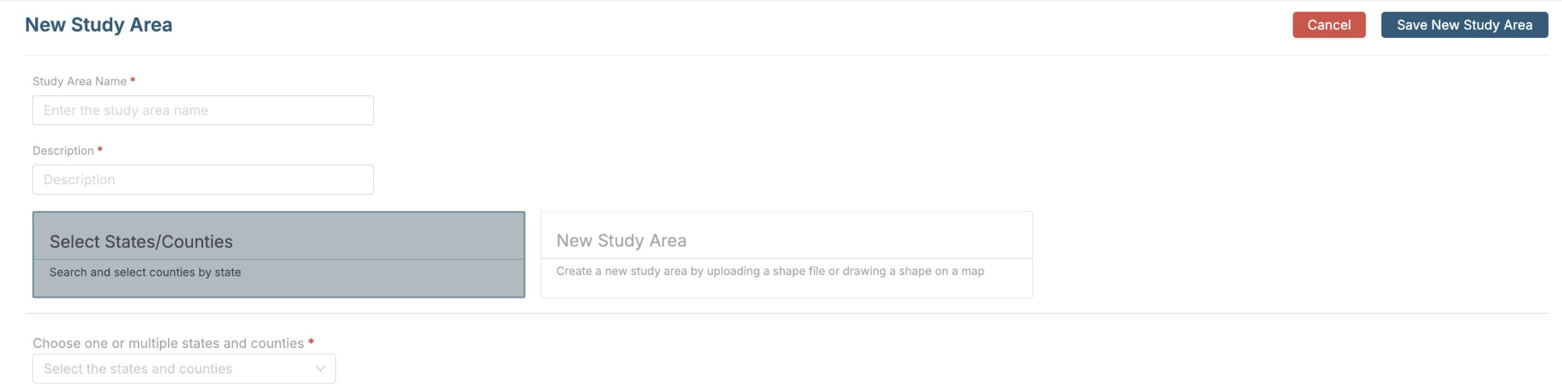 iii. Use the "Create New Study Area" button to create a new study area