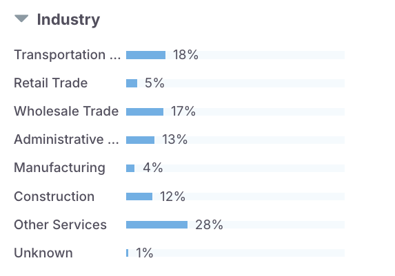 Industry charts reveal travel patterns by filtering data based on the industry that pertains to the trip.