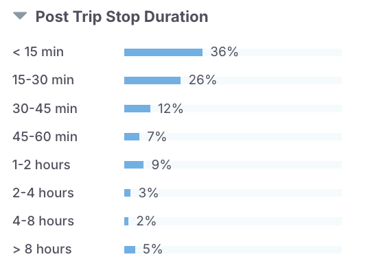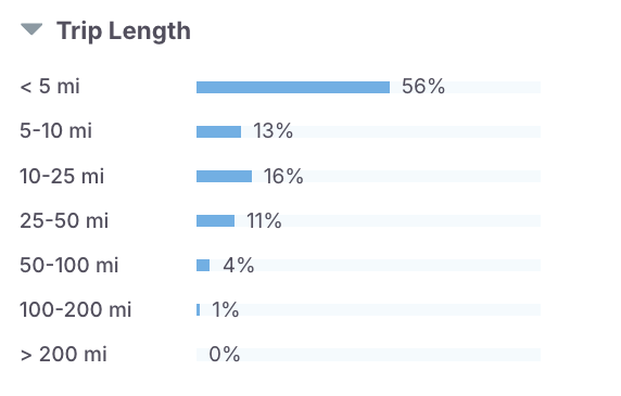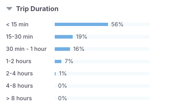 This chart reports data based on the duration of trips, enabling you to analyze patterns for short or long-distance travel.