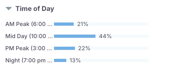 The Time-of-Day chart allows users to view the set of trips across various time periods during the day or at night.