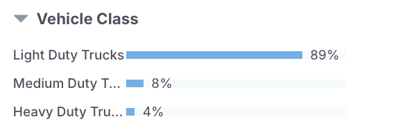 These charts allow users to segment the analysis based on vehicle class, including medium and heavy trucks.