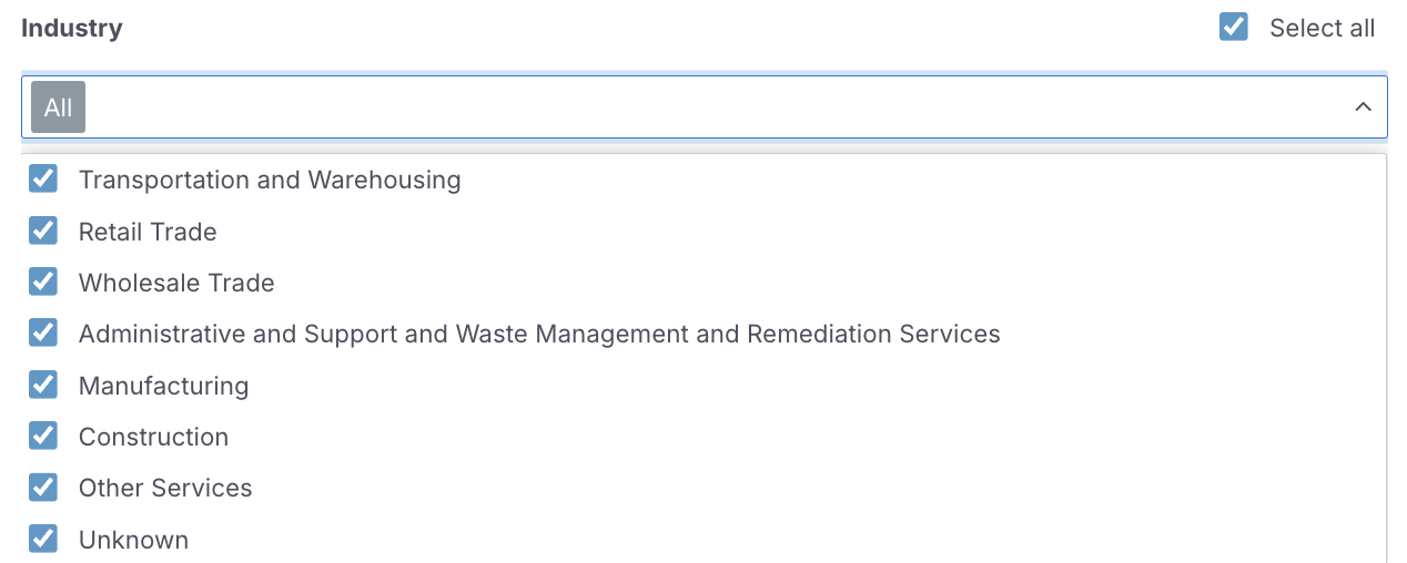 Understand travel patterns by filtering data based on the industry that pertains to the trip.