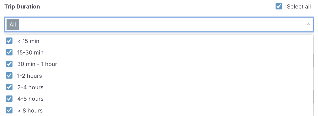 Filter data based on the duration of trips, enabling you to analyze patterns for short or long-distance travel.