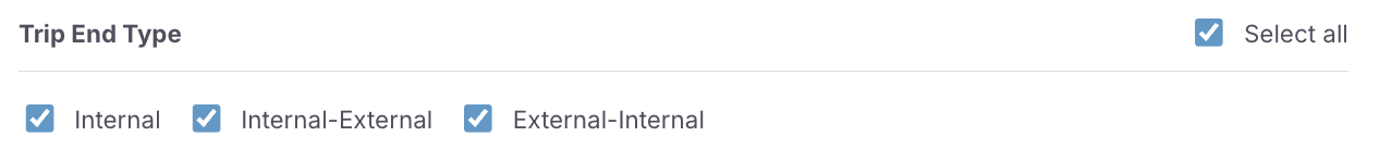 Understand travel patterns by filtering data based on whether trips end within the study area (internal trips) or end beyond the study area (external trips).