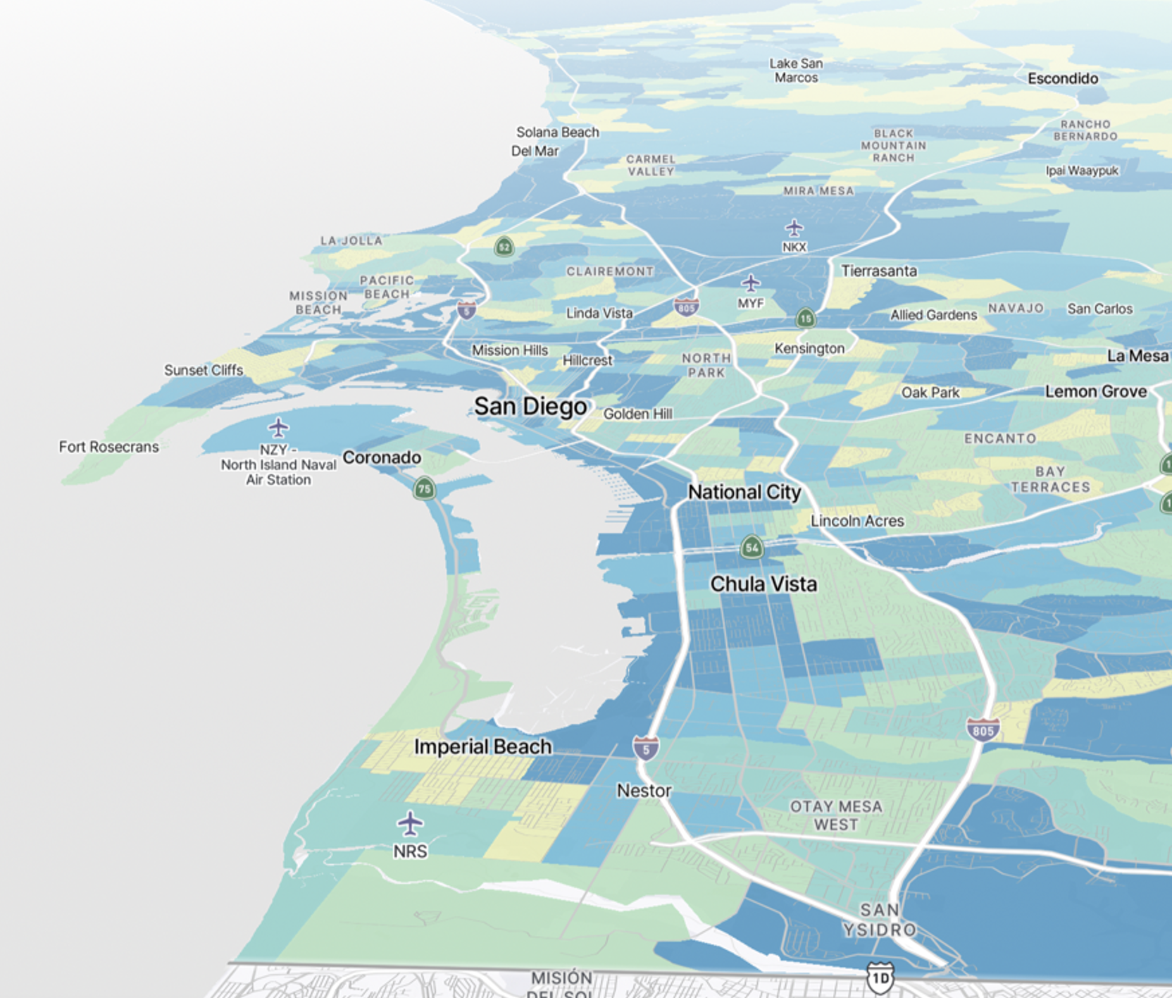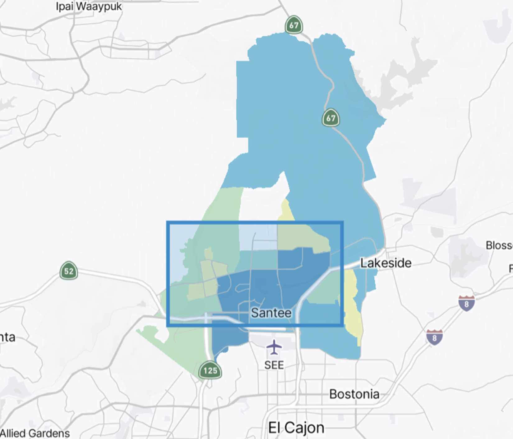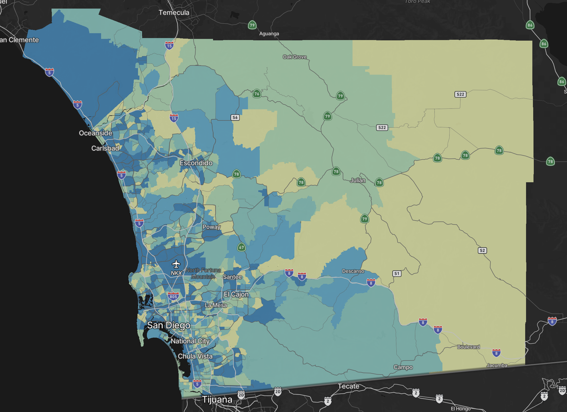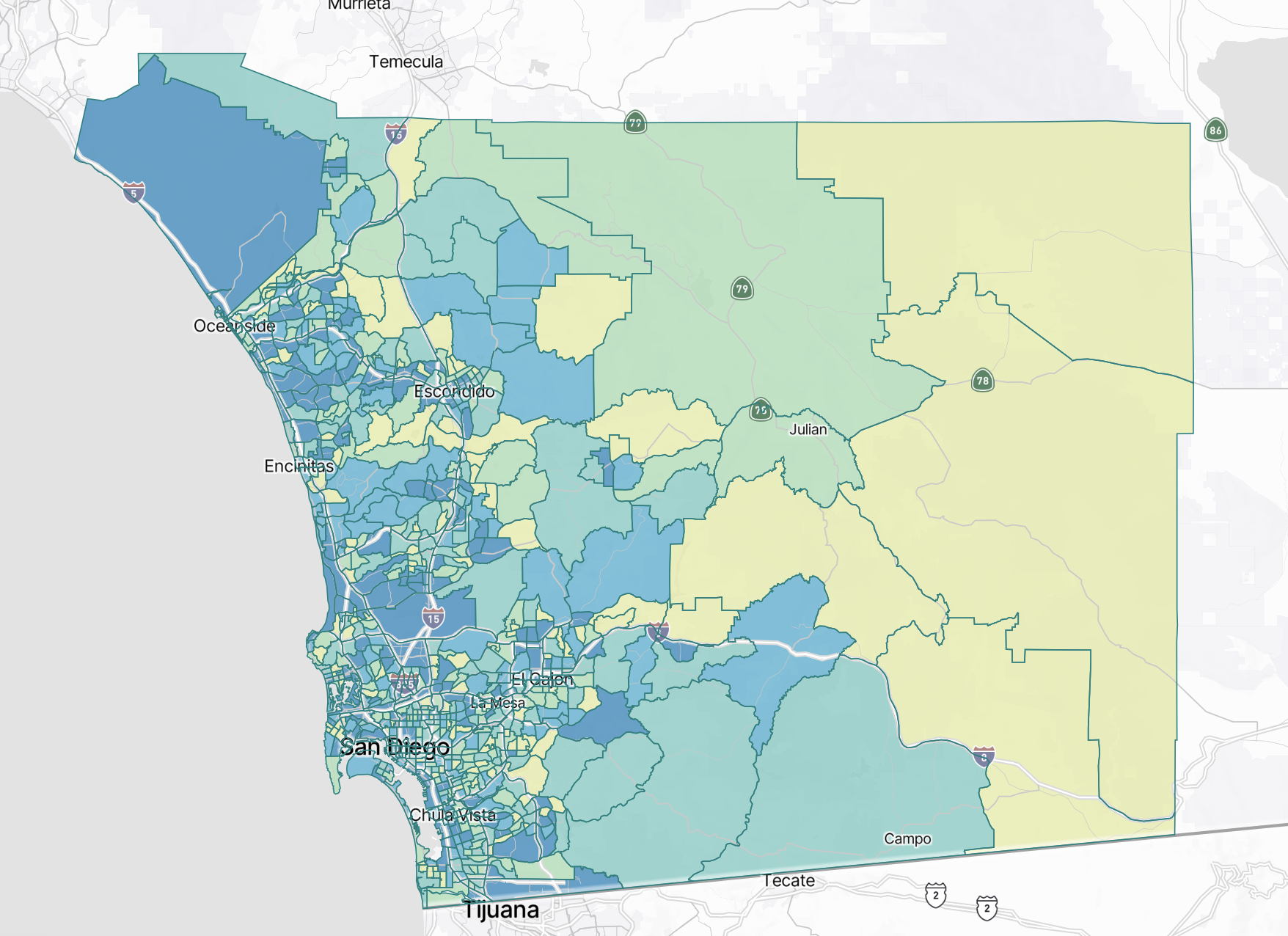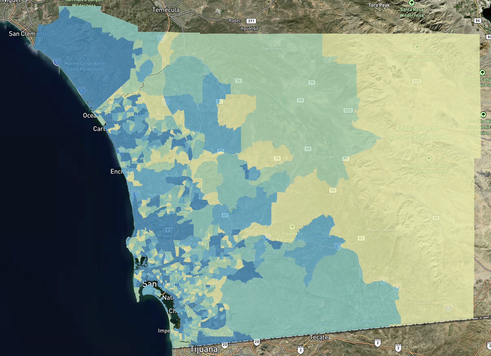 The opacity for the polygons containing the geographies can also be modified. This can be especially useful when the map is being viewed in satellite mode to study topographical aspects of an area more closely.